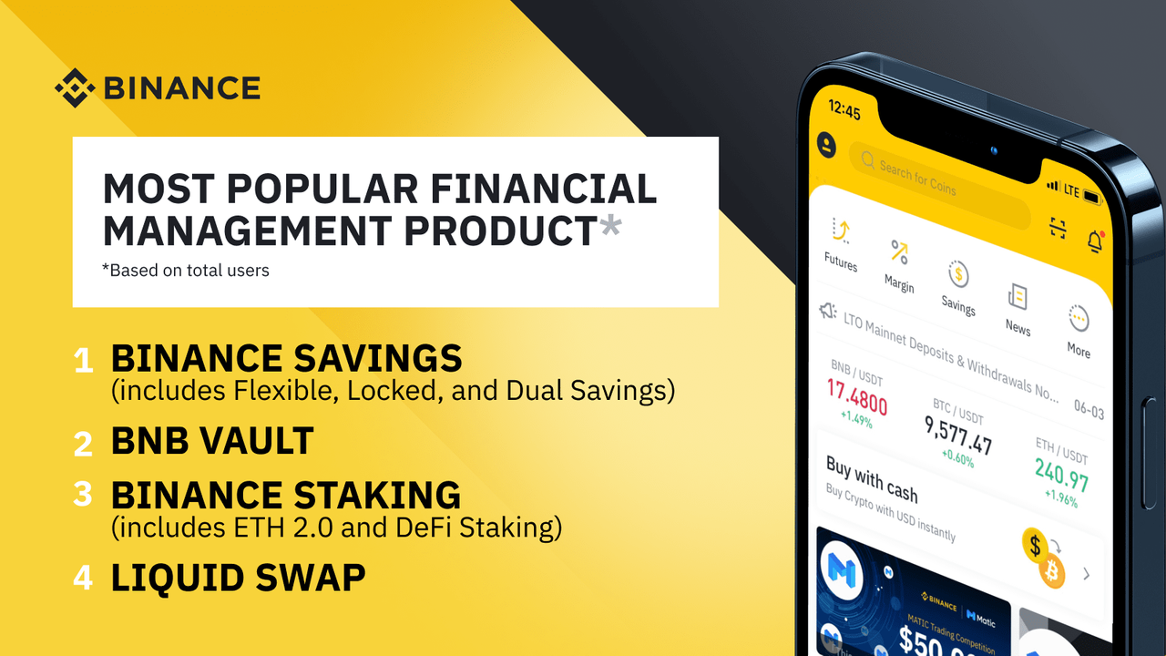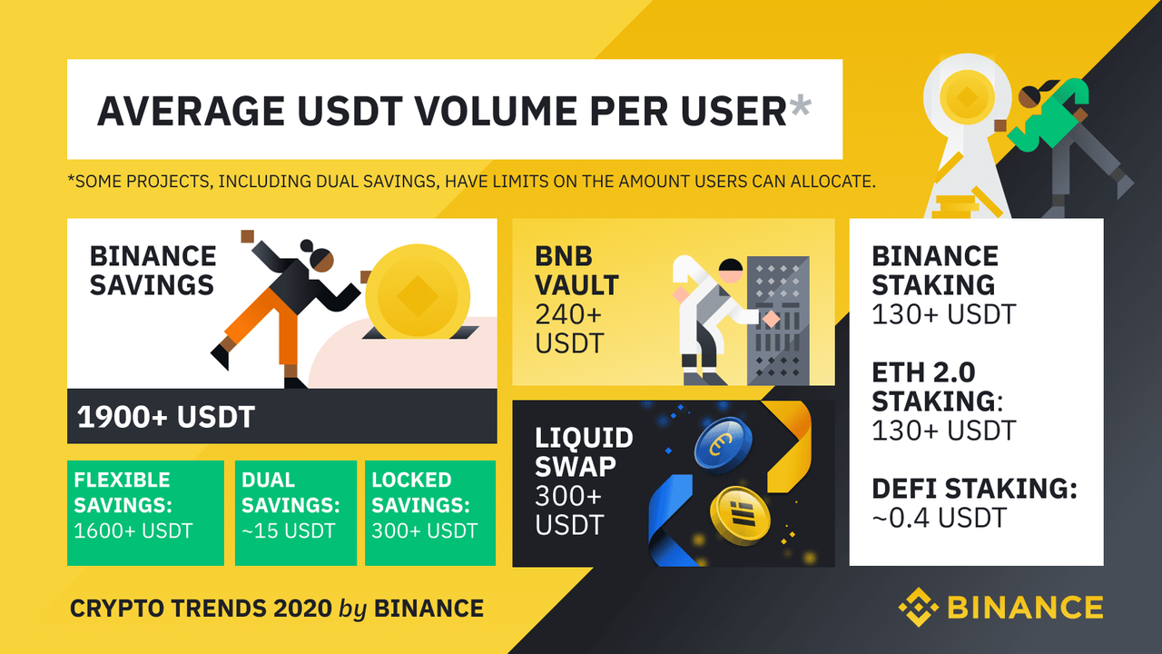 바이낸스에서는 2020년 동안에 암호화폐 투자자들이 암호화폐를 보유하고 있는 동안 해당 암호화폐를 사용하여 더 많은 보상을 얻을 수 있는 다양한 암호화폐 기반 금융 관리 상품들을 출시하였습니다. 해당 금융 관리 상품들의 실제 사용자 수에 따른 순위는 다음과 같습니다.
