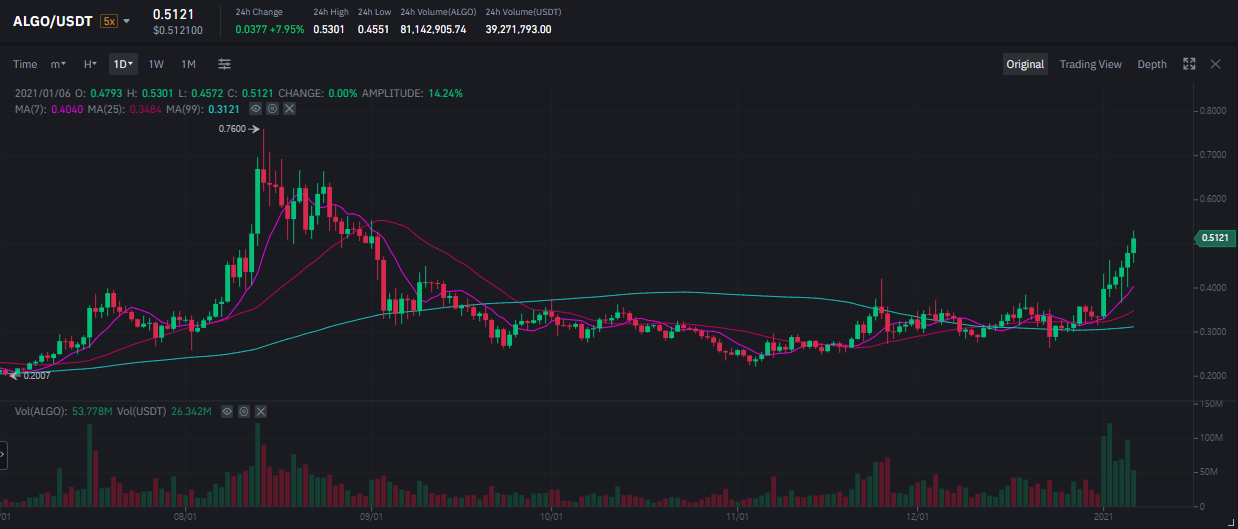 안녕하세요, 디온입니다. 아직 국내 커뮤니티에서는 크게 많은 관심을 받지 못하고 있는 대표적인 프로젝트 중 하나로 알고랜드(Algorand)를 꼽을 수 있을 것 같습니다. 현재 원화로는 빗썸에서만 거래가 가능하고, 업비트에는 BTC마켓에만 상장되어 있는 수준이지만 해외 거래소에는 그 상장하기 어렵다는 바이낸스와 코인베이스 모두에 일찍 상장한 프로젝트 중 하나죠.