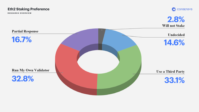 위의 차트에서 확인할 수 있는 것처럼 응답자의 65% 이상이 ETH를 스테이킹할 계획이라고 응답한 것으로 나타나는 것을 확인할 수 있습니다.