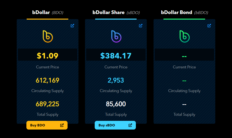 [바이낸스 스마트체인] BSC 최초의 알고리즘 스테이블코인 bDollar.fi에서 설명드린적 있지만, 알고리즘화 스테이블코인 프로젝트에는 총 3가지의 토큰이 존재합니다.
