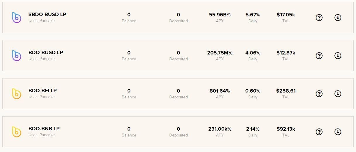 거버넌스 프로포절 시스템을 통해 beefy.finance에도 BDO와 SBDO의 LP토큰을 스테이킹하는 상품을 등록하였으며, 다른 디파이 프로토콜과의 연결에 프로포절 시스템을 사용하고 있는 점은 정말 좋은 접근법이 아닌가 싶습니다.