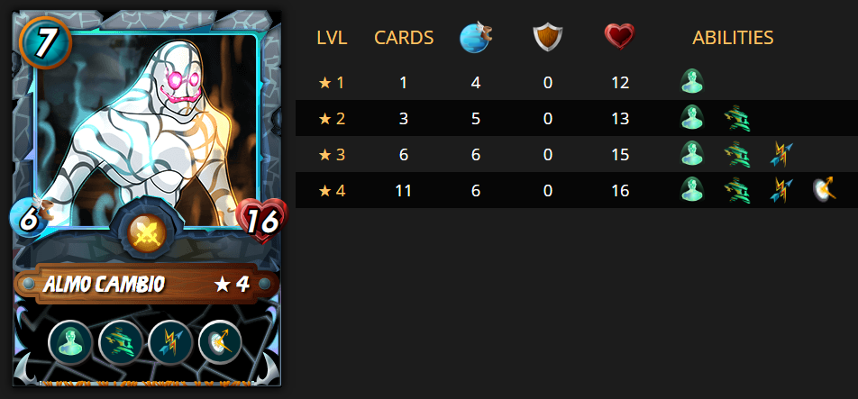 - 아군 몬스터들의 근접 공격력을 증가시키는 Inspire능력을 가지고 있으며, Thorns능력을 가지고 있어서 고마나 전에서 첫 열에 위치시키기 좋습니다