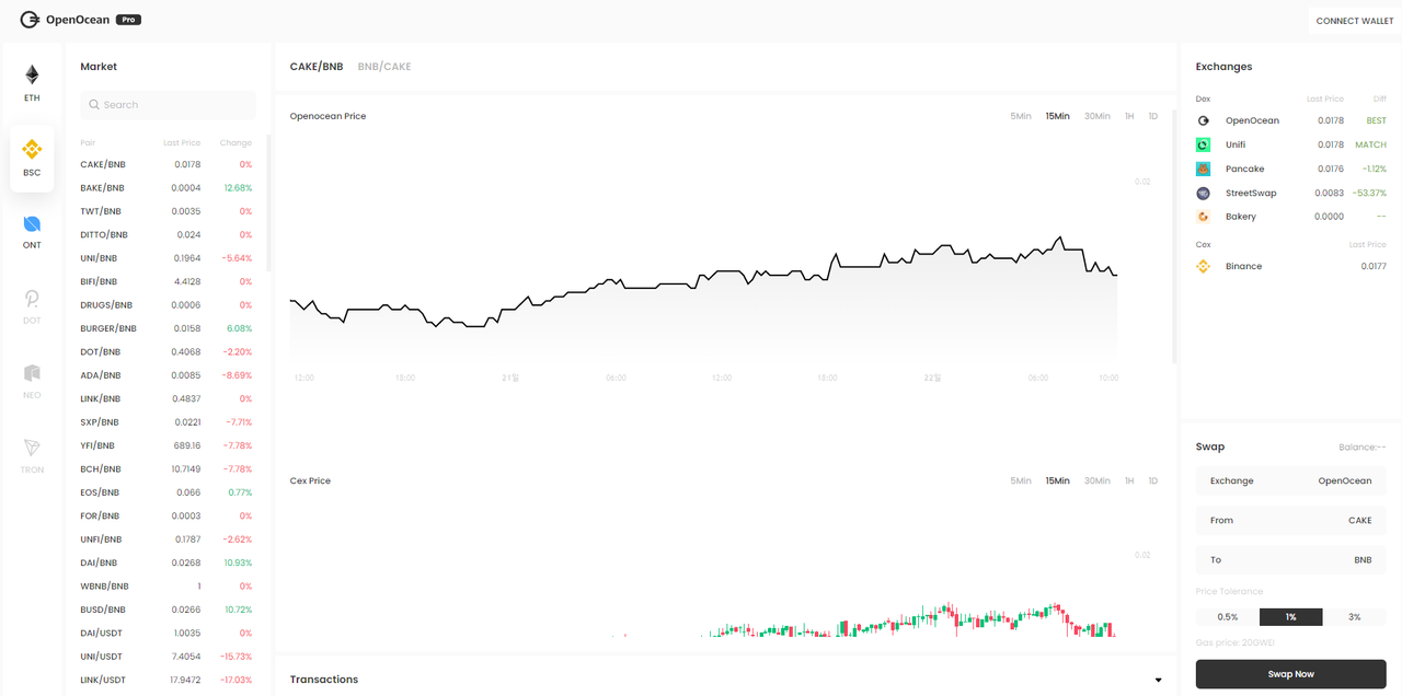 안녕하세요, 디온입니다. 일전에 포스팅을 통해 바이낸스 스마트 체인(BSC)의 DEX 애그리게이터로 소개드린 바 있는 OpenOcean에서 UI개선을 통해 사용자 경험을 한층 개선한 OpenOcean PRO 베타 버전을 출시하였습니다.