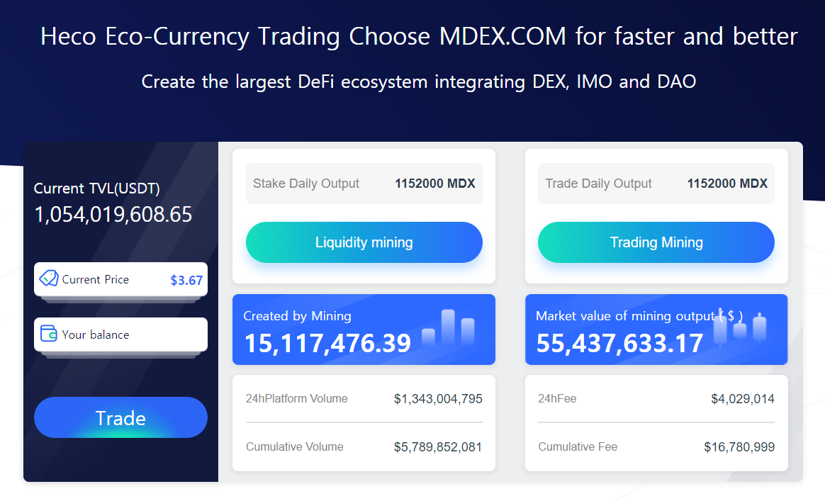 후오비의 상장 소식 덕분에 1.5달러 수준까지 내려갔었던 MDX의 가격이 현재는 3달러 후반 수준에서 거래가 되고 있으며, MDEX.com에서의 총 유동성 공급 물량(TVL)도 10억 달러를 넘는 수준에서 유지가 되고 있는 상황입니다.