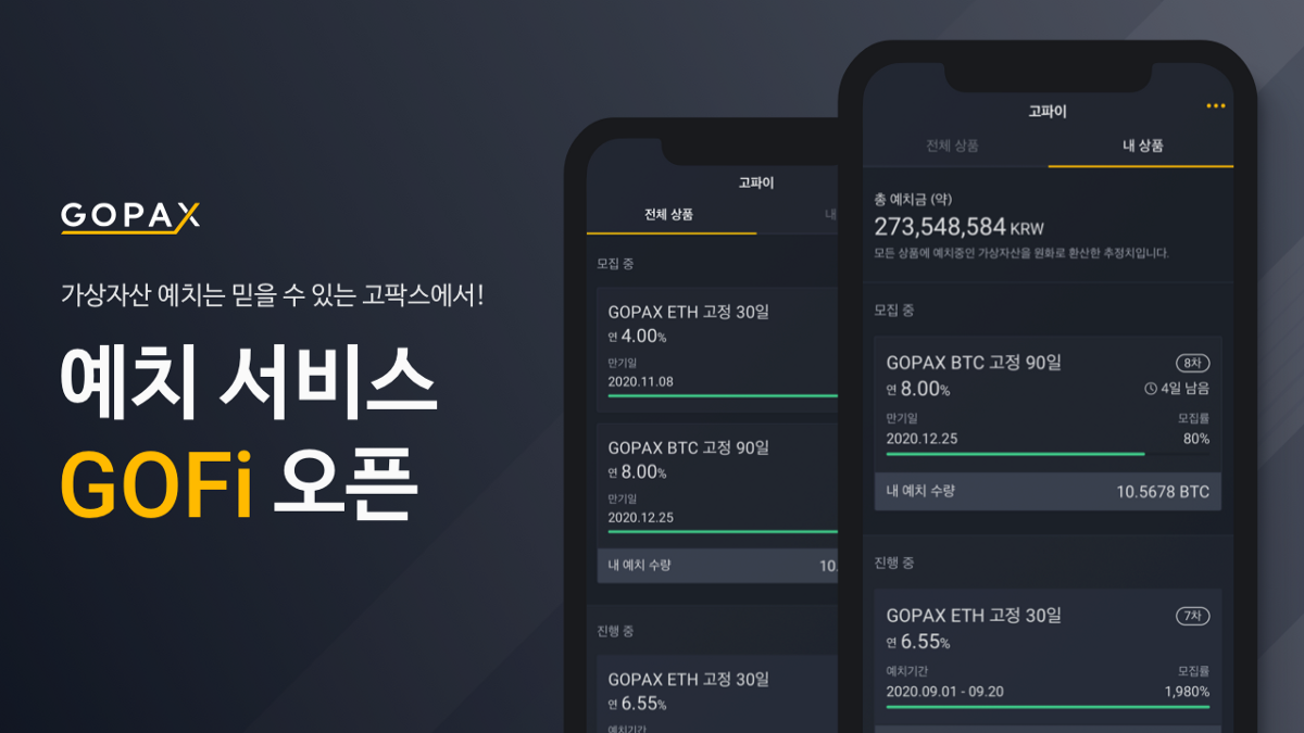 안녕하세요, 디온입니다. 지난 2020년 12월 18일부터 고팍스에서는 거래소 지갑에 비트코인과 이더리움을 보유하고 있는 사용자들이 자유롭게 사용할 수 있는 이자수익 예치 상품 고파이(GOFi)를 오픈하여 운영하고 있습니다.
