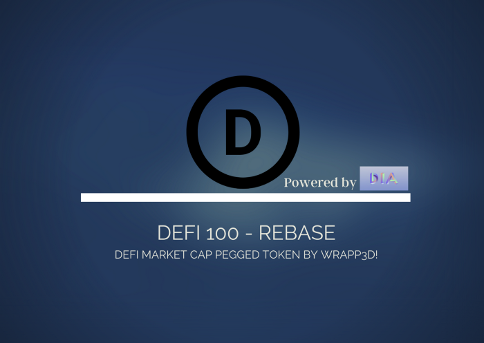 DEFI100 프로토콜의 D100 토큰은 탄력적 공급량(elastic supply) 원칙에 따라 작동하고 리베이스 기능을 사용하려 현재의 가격과 목표 가격 사이의 균형을 유지하는 합성 인덱스 토큰입니다. D100토큰은 디파이 섹터의 전체 시가 총액에 1:1,000억(달러) 비율로 고정이 된 채로 움직이게 됩니다. 디파이 섹터 전체의 시가 총액은 파트너사의 오라클 가격 피드 정보에서 가져온 금액을 기반으로 합니다.