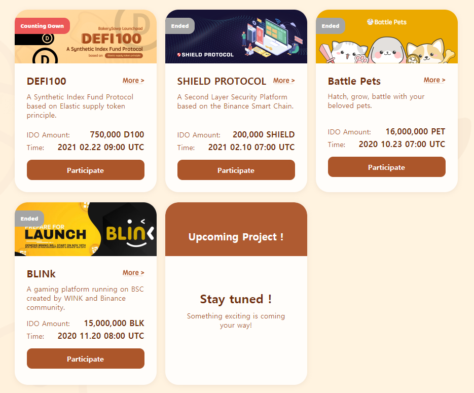 베이커리스왑에서는 BLK, PET, SHIELD까지 총 3회의 IDO를 진행한 바 있으며 오늘 진행되는 DEFI100 토큰세일이 4번째 IDO에 해당합니다. 이전 IDO들이 팬케이크스왑에서의 IFO에 비해서는 흥행 성적이 저조한 편이지만 그럼에도 불구하고 실패했다고 할 수는 없는 것 같습니다.