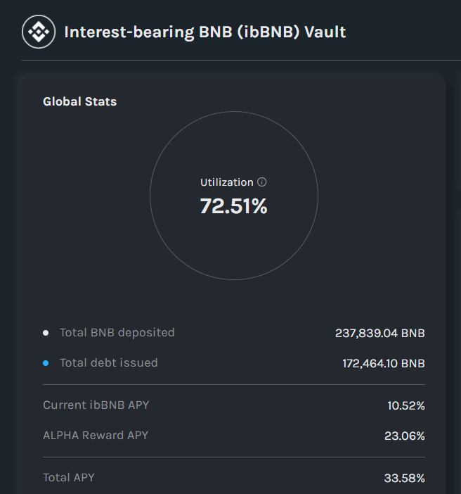 - 즉 위에서 설명한 BNB를 빌려주고 싶은 홀더가 예치한 BNB가 유동성 공급자들의 레버리지 파밍을 할 수 있게 만드는 재원이 되며, 유동성 공급자들이 사용하는 대가로 지불하는 이자비용을 ibBNB홀더들이 받아가게 됩니다.