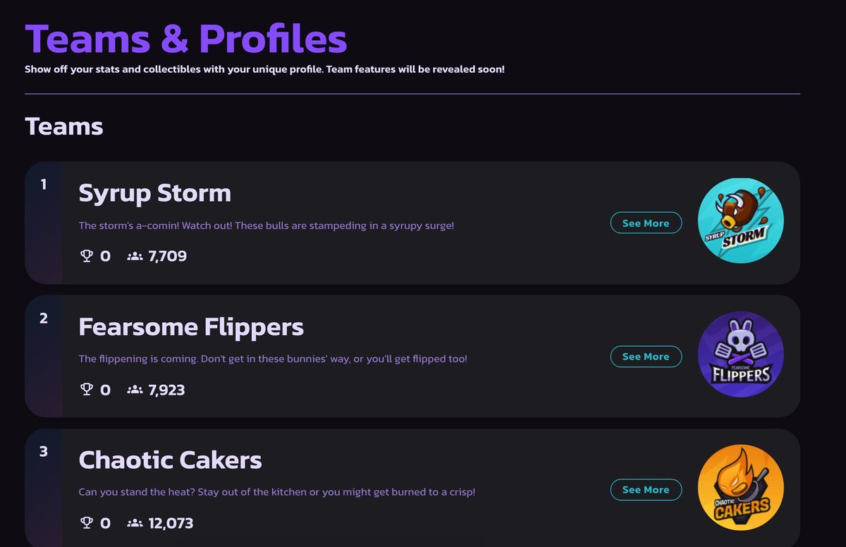 - 팬케이크스왑에서는 Syrup Storm, Fearsome Flippers, Chaotic Cakers까지 총 3개의 팀 중 하나를 선택할 수 있습니다