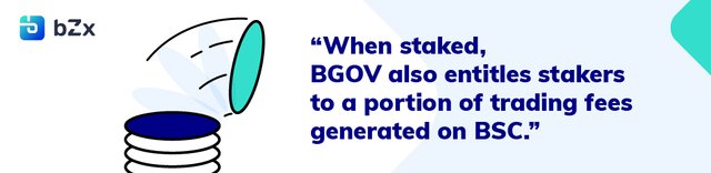 BGOV토큰은 바이낸스 스마트 체인 기반의 bZx network의 프로덕트 라인인 Torque와 Fulcrum의 파리미터를 관리하는 거버넌스 토큰이자, 프로토콜 수수료의 일부를 받을 수 있는 유틸리티 토큰입니다.