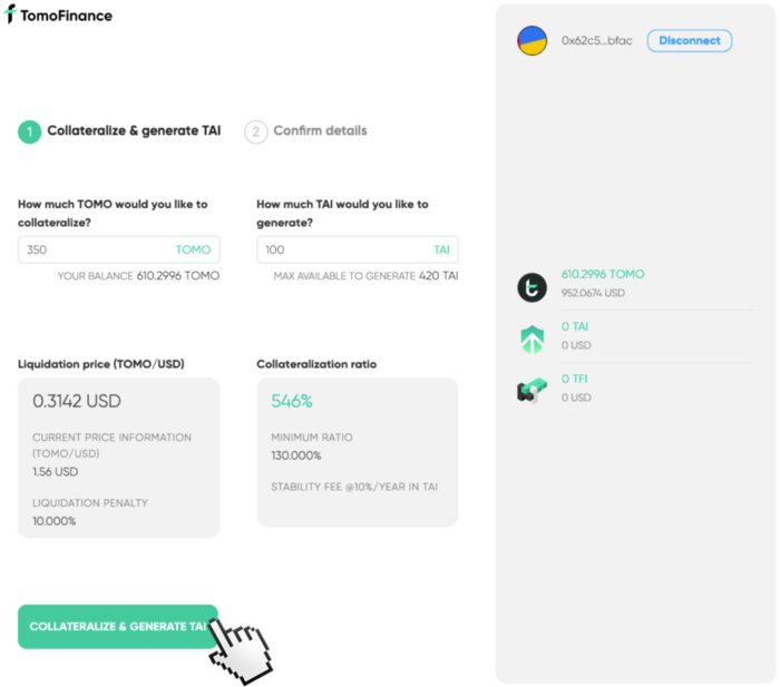 - 원문 링크 : 【To be launched on April 26】 Issuing Stablecoin TAI using TOMO as collateral: How to use TomoFinance
