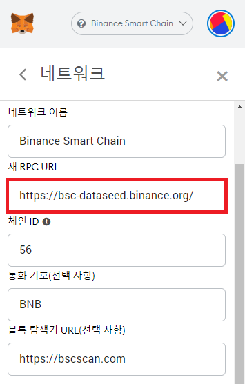 노드 설정 변경은 위와 같이 New RPC URL이라고 되어 있는 부분의 주소만 변경해주면 됩니다. (Network Name이나 ChainID, Symbol 등은 그대로 두셔도 됩니다)