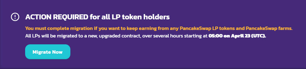 팬케이크스왑의 마이그레이션 정보는 아래의 링크를 통해서 확인해보실 수 있습니다.