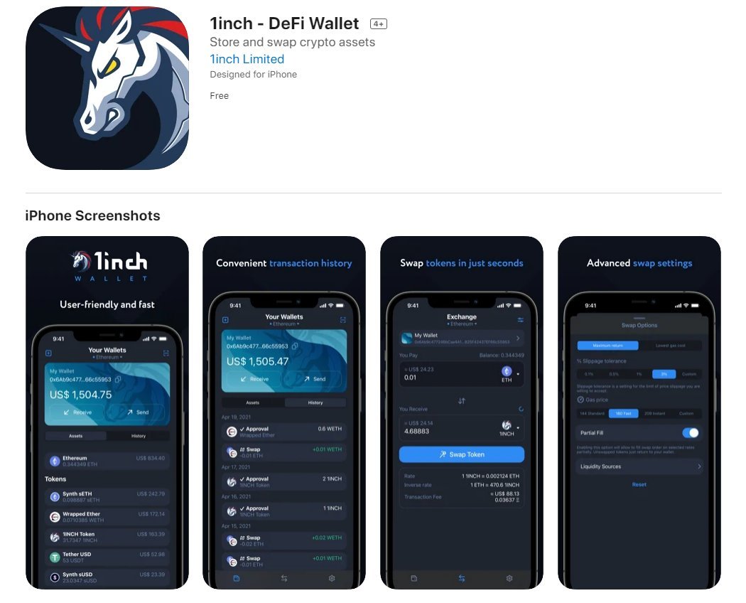 - 1inch DeFi Wallet 다운로드 링크 : https://apps.apple.com/us/app/1inch-defi-wallet/id1546049391