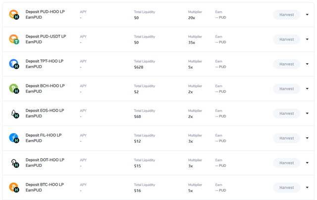 주요 페어로는 푸딩스왑의 토큰인 PUD, 후 스마트 체인의 네이티브 토큰인 HOO토큰이 사용되며, 여기에 주요 협력관계에 있는 토큰포켓의 TPT와 후닷컴이 전략적 투자자로 참여한 후오비체인(HECO)의 PIPI, 그리고 비트코인, 이더리움과 같은 주요 암호화폐가 포함됩니다.