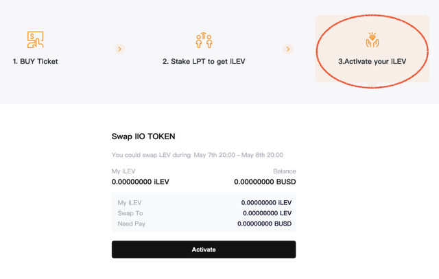 만약에 iLEV 토큰을 100개 채굴한 경우에는 액티베이션 기간 동안 iLEV 토큰 100개를 LEV 토큰으로 교환할 수 있으며 이 토큰 교환을 액티베이션이라고 부릅니다.