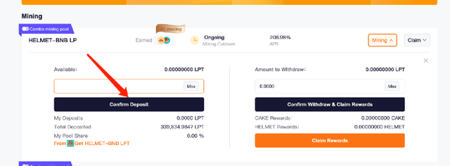 - HELMET/BNB LP토큰을 이미 헬멧 인슈어 마이닝 페이지에 스테이킹하고 있는 경우에는 IIO 티켓 비용인 1 HELMET만 지불하면 됩니다