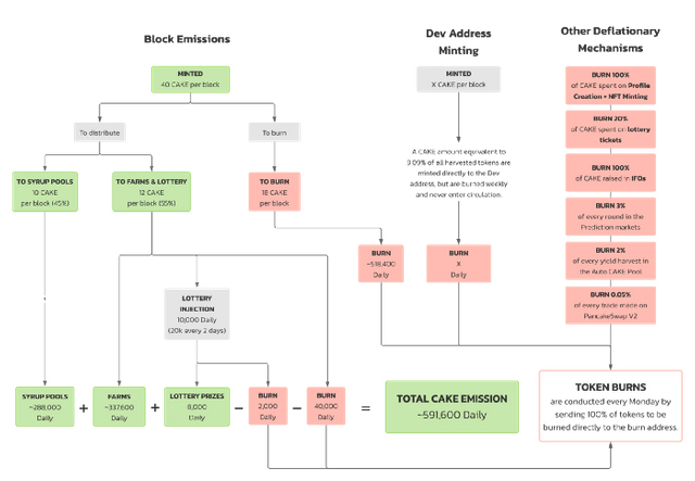 팬케이크스왑은 런칭 시점부터 지금까지 계속해서 CAKE토큰의 소각 메커니즘 도입을 통해 토큰 방출률(emissions)을 감소시키고 있으며, 계속해서 토큰 이코노미가 변하고 있는 관계로 다소 복잡하게 느끼는 분들이 많을 것 같습니다.