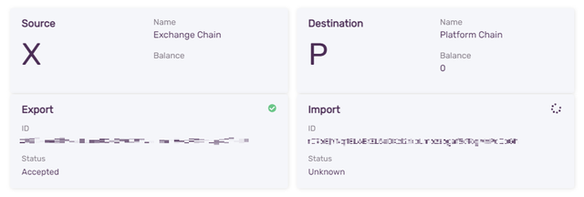 ⑦ 위와 같이 X-Chain에서 P-Chain으로 AVAX토큰이 이동되고 있는 것을 확인할 수 있습니다