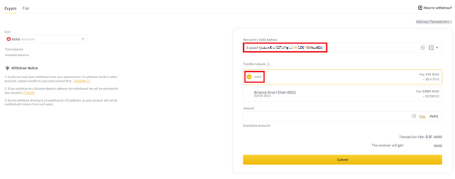 - 아발란체 월렛 점검이나 네트워크 업그레이드(5월 10일 예정) 중에는 출금이 제한될 수 있습니다