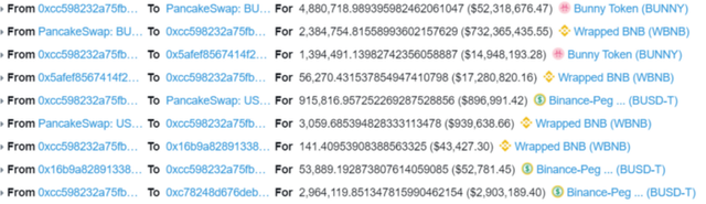 결과적으로 해커는 플래시론으로 대출받은 금액을 모두 상환하고도 220만 개 정도의 BUNNY를 추가로 획득하는 효과가 있었습니다. 해커는 일부를 Anyswap을 통해 ETH로 교환하여 탈출한 것으로 확인되며 이 해킹 공격을 통해 약 4,000만 달러의 이익을 남겼습니다.