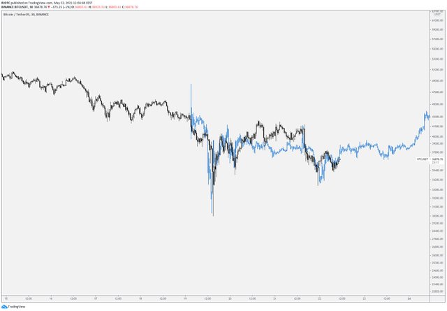 안녕하세요, 디온입니다. 비트코인이 지난 4월 중순에 ATH(최고점)을 찍었던 비트코인이 일론 머스크의 트윗이 기폭제가 되어 하락세가 강해지더니, 석가탄신일에는 선물에서의 롱숏 세력간의 엄청난 혈투 끝에 롱 세력이 패배하면서 30K 라인이 깨지는 모습까지 보게 되었습니다.
