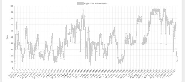 탐욕지수가 단기적인 가격흐름을 반영하는 것은 아니지만, 역사적으로 탐욕지수가 10포인트대에서 "엄청난 공포"를 보여줄 때는 항상 매수하기 좋은 시점이었습니다.