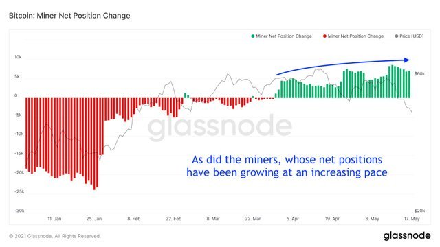 - 어제의 포스팅에서 채굴자들의 비트코인 순 보유량은 증가 추세에 있다고 했으나 최근 약 5일간 일부 채굴자들의 매도세가 있었다는 사실도 확인할 수 있으며, 중국 정부에서 공식적인 규제 정책을 발표하는 경우에는 현재 지속적으로 HODL 포지션에 있었던 채굴자들의 물량이 시장에 추가로 대량 덤핑되는 사태가 발생할 수도 있습니다.