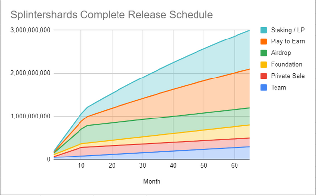 지금까지 스플린터랜드가 그래왔던 것처럼 토큰 릴리즈 스케쥴 역시 굉장히 장기 플랜으로 설계되어 있으며 약 65개월에 걸쳐서 선형으로 락업이 해제되는 방식을 따릅니다.