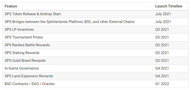 스플린터랜드팀의 로드맵에 따르면 SPS토큰의 출시 및 에어드랍은 2021년 7월 중에 예정되어 있으며 나머지 보상 등의 기능은 2021년 3분기부터 하나씩 추가가 될 것으로 보입니다.