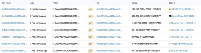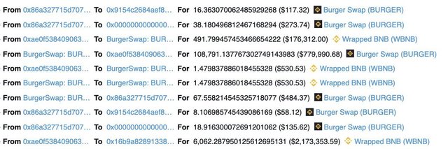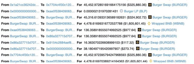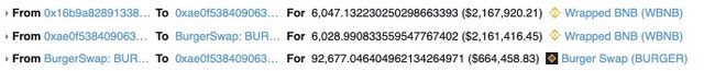 - 대출 받은 대부분의 WBNB를 버거스왑에서 92,000개의 BURGER로 토큰 스왑