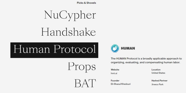 휴먼프로토콜은 이미 2018년 6월에 12개월 락업 조건으로 프리세일이 진행된 바 있으며, 해시드의 포트폴리오 중 하나로도 잘 알려져 있습니다(지금은 위의 이미지 및 웹사이트 주소와 다른 것을 사용하지만 동일 프로젝트가 맞습니다).