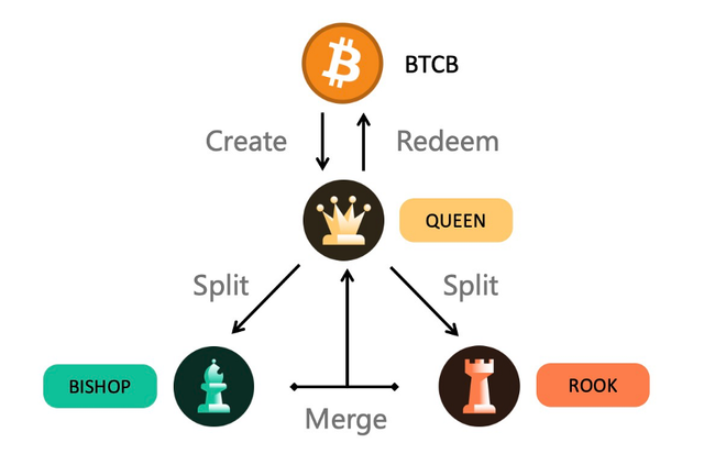 Tranchess는 기본적으로 QUEEN, BISHOP, ROOK 이라는 3가지 종류의 트랑쉐(tranche) 토큰과 거버넌스 토큰인 CHESS로 구성이 되어 있는데 그 역할 및 기능은 다음과 같습니다.