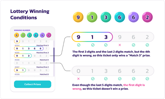 생각보다 많은 분들이 헷갈려하는 부분인데, 당첨 조건에서 가장 중요한 것은 첫 번째 자리의 숫자부터 맞아떨어져야 한다는 것입니다.