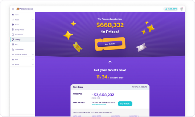 현재까지 약 35만 개의 CAKE 토큰이 로또 상금 풀에 배정되어 있으며, Lottery V2의 출시를 기념하며 첫 주 동안에는 500만 달러 상당의 상금이 배분될 예정입니다.