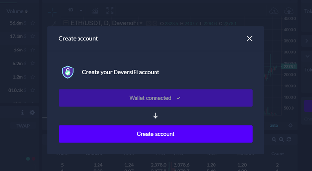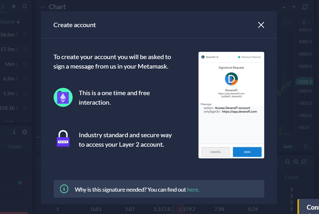 - DeversiFi 계정 생성에는 수수료가 들어가지 않으며, 최초 1회만 서명이 필요합니다.