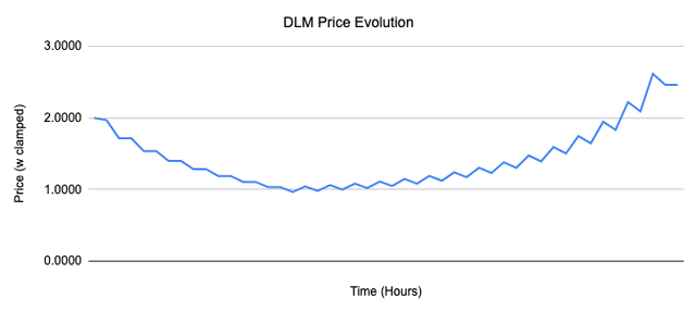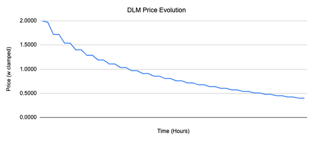 DLM이란 프로젝트가 Layer2에서 토큰을 출시할 수 있도록 하는 DeversiFi의 토큰 생성 이벤트 메커니즘입니다. 간단하게는 리버스 옥션과 지속적인 유동성 공급을 결합한 방식으로, 높은 가격에서 시작되어 점차 가격이 내려가는 방식입니다.