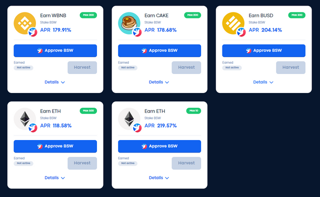 바이낸스 등과 같은 해외 거래소처럼 레퍼럴 시스템을 통해 DeFi 사용자들도 자신의 거래수수료를 다시 페이백 받을 수 있다는 점도 꽤나 차별성을 가지고 있다고 할 수 있으나, 무엇보다도 BSW 토큰으로 BNB, CAKE, ETH를 마이닝할 수 있다는 점이 꽤나 큰 메리트라고 할 수 있습니다. *(오늘 ETH가 새롭게 추가되었습니다)