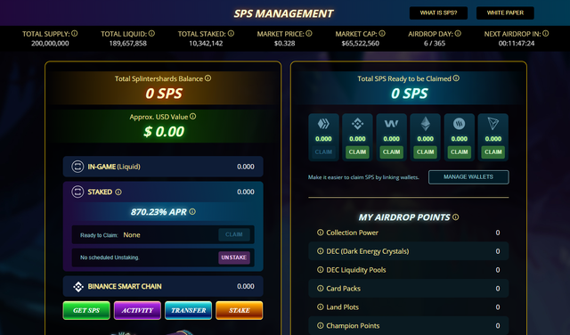 SPS토큰을 팬케이크스왑에서 구매하여 BSC지갑에 보유 중인 분들도 많으실텐데, SPS토큰의 스테이킹은 스플린터랜드의 공식 계정을 만든 후에 게임 내에서만 가능하므로 반드시 스플린터랜드 공식 홈페이지에 가입하셔야 합니다.