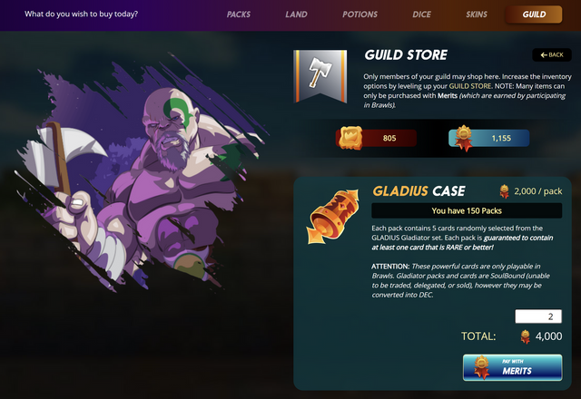 [Splinterlands] 난투(Brawls) 보상을 사용할 수 있는 Guild Store 설명