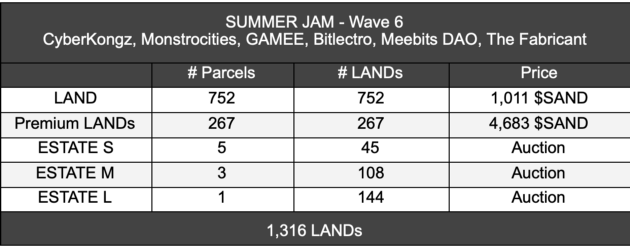 [SANDBOX] 써머 잼 추가 연장 LAND 세일 정보 (8월 5일 밤 10시 부터)